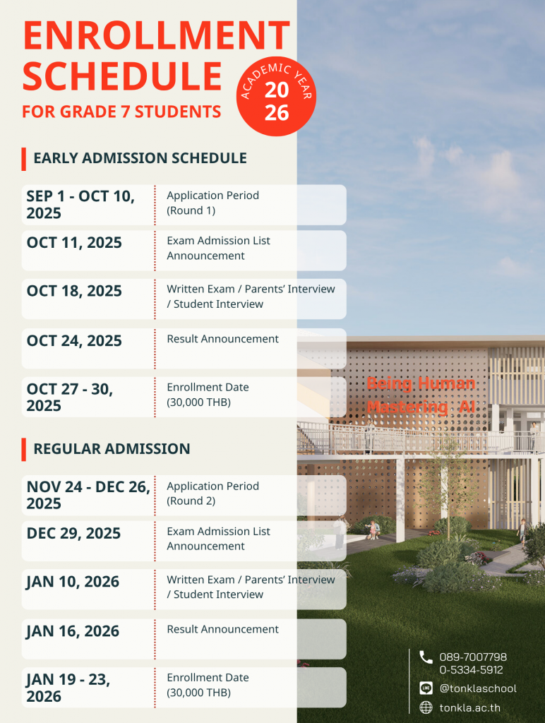 Tonkla School has nurtured generations of joyful learners. These young minds have grown an flourished and now, they can continue their journey right here. Tonkla High School a space designed to meet international standards while staying true to Tonkla’s roots: imagination and happiness.